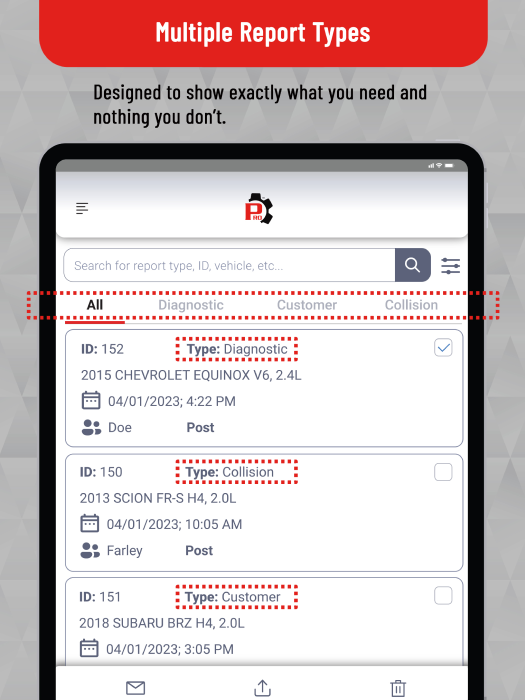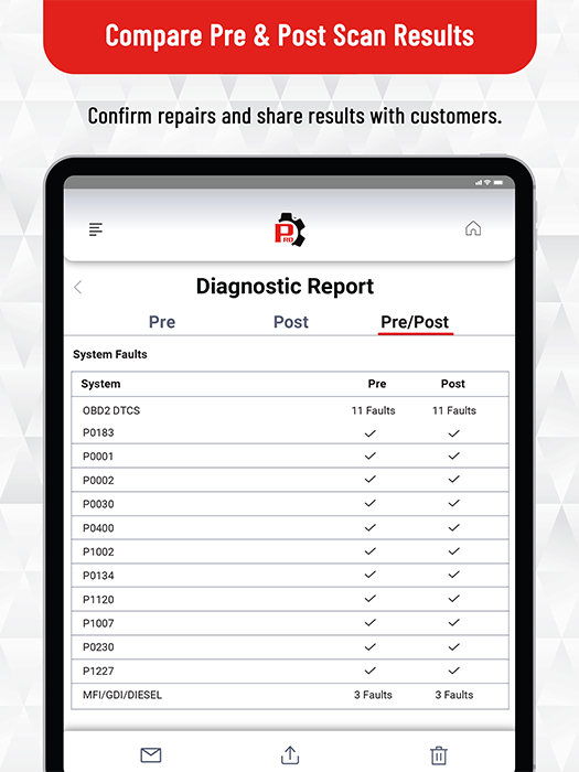 Available on the Google Play and App Store. Must sync with your SDS Diagnostic Tablet. Learn More
